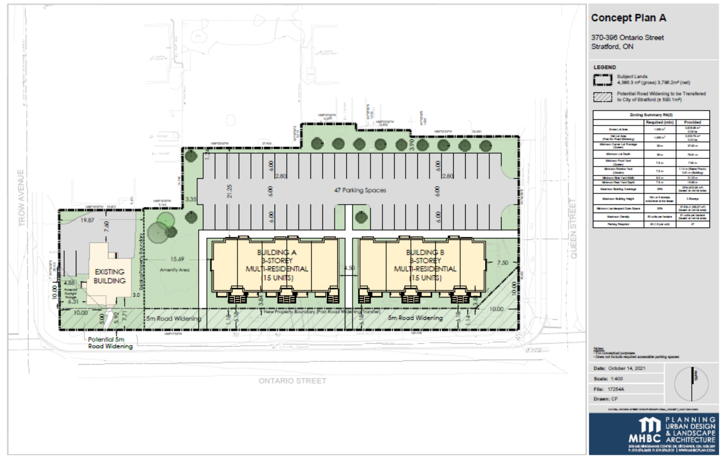 Chancery Development, a subsidiary of Chancery Mendez Holdings Canada, is a Toronto developer who is asking the City of Stratford to change our Official Plan. They want Council to allow the destruction of three houses and the addition of apartment complexes on the Ontario Street heritage corridor, right next to the entrance to the Stratford Festival. The residents in this area are happy to see development, but they want good development. They have researched this company, and can find very little about it (the company is not connected with Chancery Seniors Housing, a builder of retirement homes). Residents want to know why it’s so important for this company to change the Official Plan, rather than just design buildings that fit in with the neighbourhood. The developer is asking for a change that would allow six storey buildings, even though their plan is for two 3 1/2 storey condominiums.